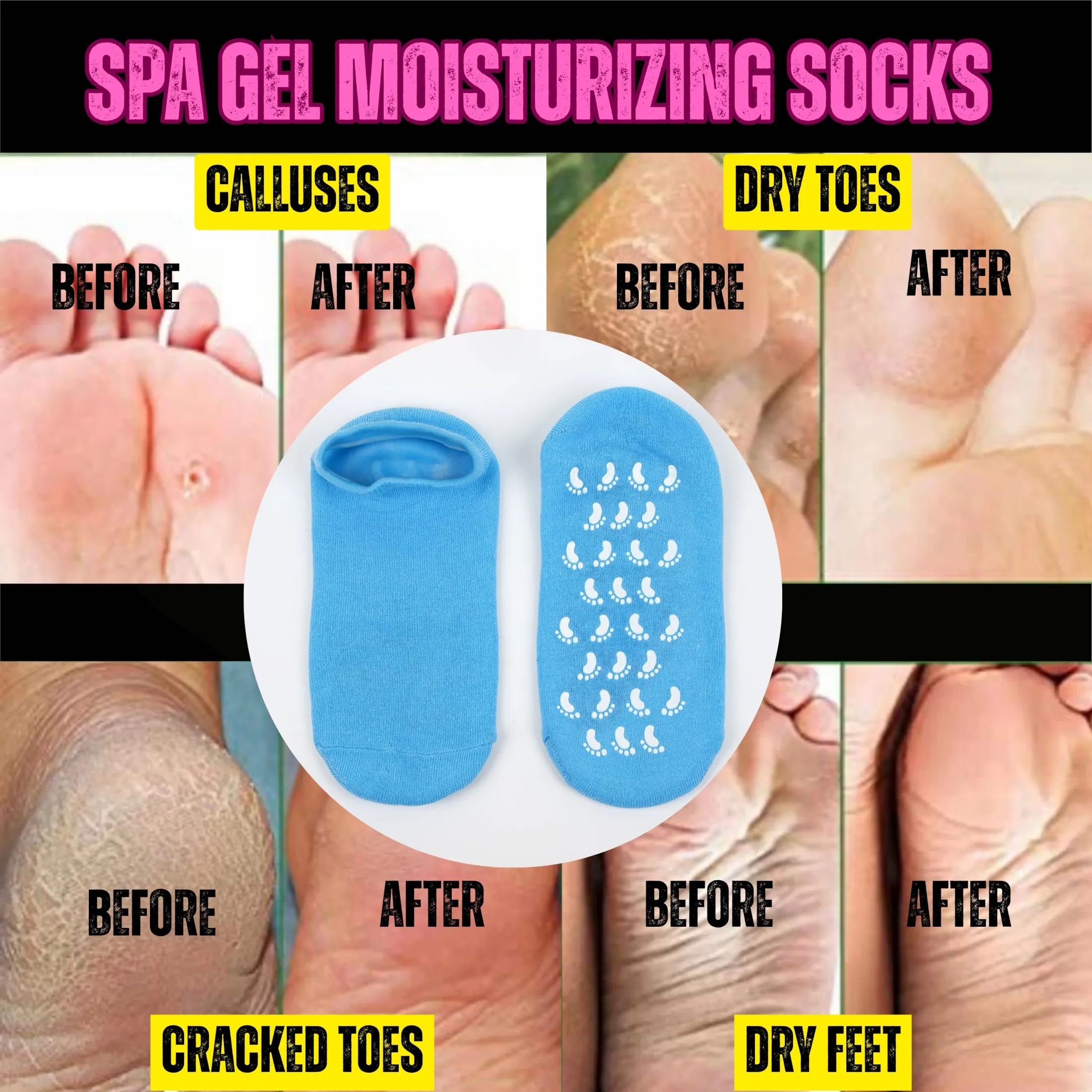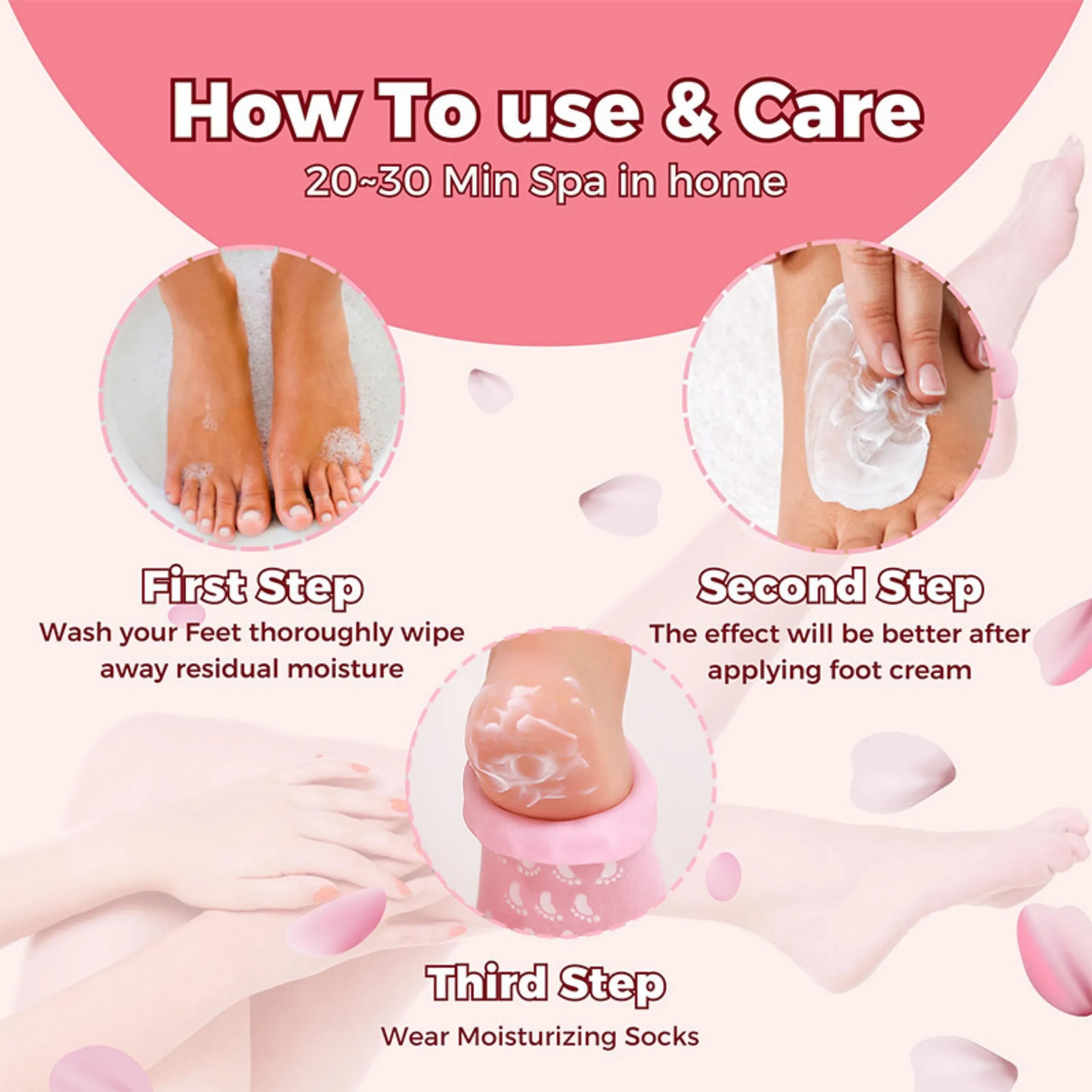 Wear: Slip on the spa gel socks and wear them for 1-2 hours or overnight for deep treatment.